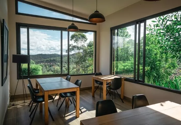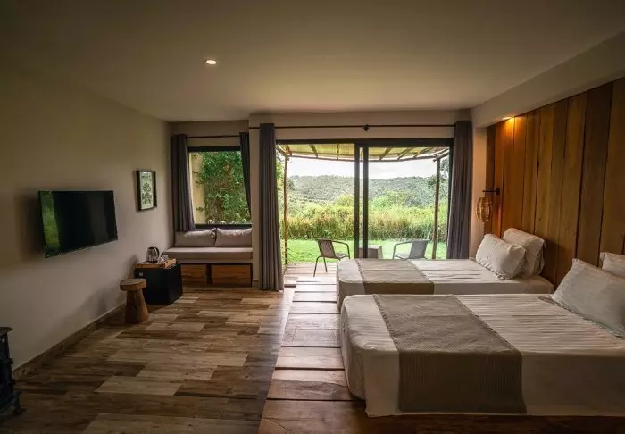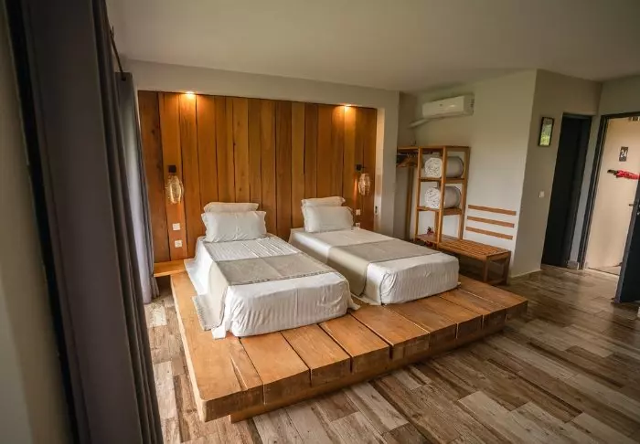 De 23 værelser er store og indrettet med respekt for den omkringliggende natur. Her er trægulve og afdæmpede farver, og fra brusekabinen har du udsigt til skoven omkring dig. Badeværelserne er i øvrigt udstyret med sæbe og shampoo, som er miljøvenligt, ligesom alt overskudsvand opsamles og filtreres inden det genbruges til at vande den blomstrende have udenfor.