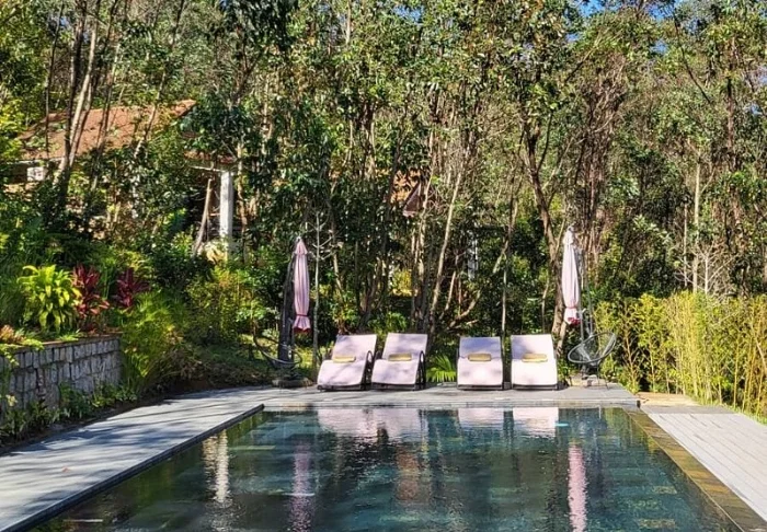 Værelserne er beliggende på en skråning omgivet af regnskov, og indretningen er lys og varm i en blanding af nordisk enkelhed med et strejf af Bali.