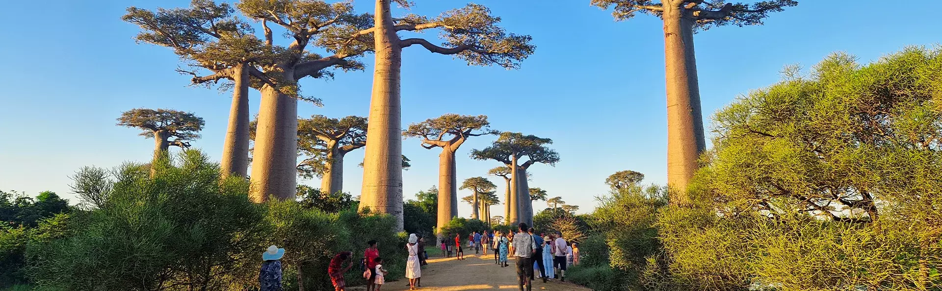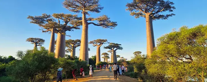 Efter et vaskeægte roadtrip gennem Madagaskars evigt foranderlige landskaber venter en anden slags træer; de ældgamle og mægtige baobab-træer ved Morondava.