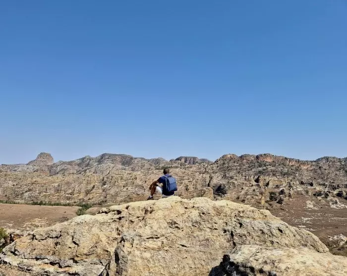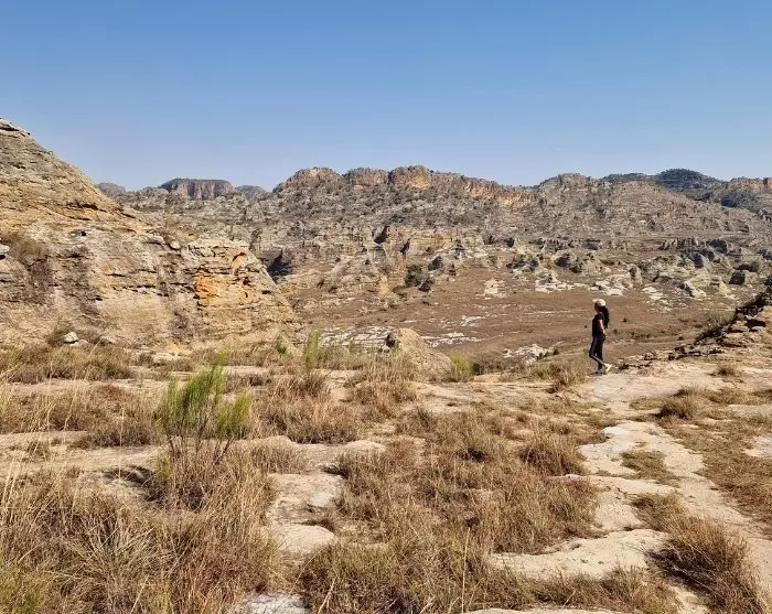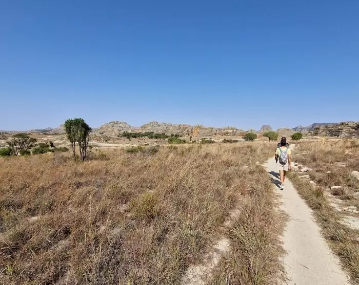 Herfra er der godt en times kørsel tilbage, før du når Isalo. Landskabet er kendetegnet ved lange, øde strækninger med knæhøjt græs, så langt øjet rækker. Det ligner næsten en østafrikansk savanne, og det er nemt at forstå, hvorfor Bara-folket driver deres kvæg her.