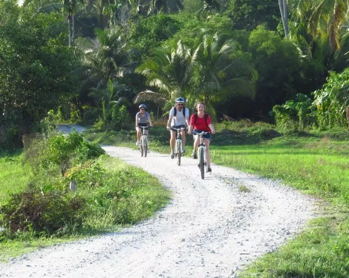 Du bliver hentet på hotellet og kørt til den lille fiskerlandsby Kuala Teriang på Langkawis vestkyst. Her får du udleveret cykelhjelm og får justeret din cykel, så den passer, og efter en kort briefing starter cykelturen. Du cykler ad mindre stier omgivet af smukke omgivelser, og undervejs kan du nyde synet af den majestætiske Mat Cincang-bjergkæde, der rejser sig i baggrunden, samt frodige rismarker, frugtplantager, farverige haver og små fiskerihavne.