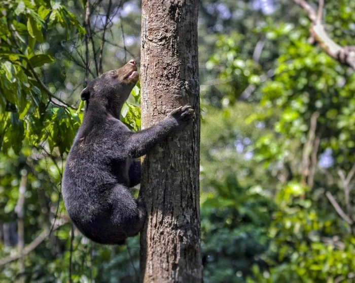 Fra orangutangernes verden bevæger du dig over til nabocenteret, Sun Bear Conservation Centre, hvor du skal opleve solbjørnen. Her er tale om verdens mindste bjørneart, som er kendetegnet ved sin korte sorte pels og en lys, halvmåneformet markering på brystet – der til forveksling ligner en solopgang, deraf navnet solbjørn. Centret spiller en central rolle i bestræbelserne på at sikre, at solbjørnen har en fremtid i sit naturlige habitat i Borneos regnskove.