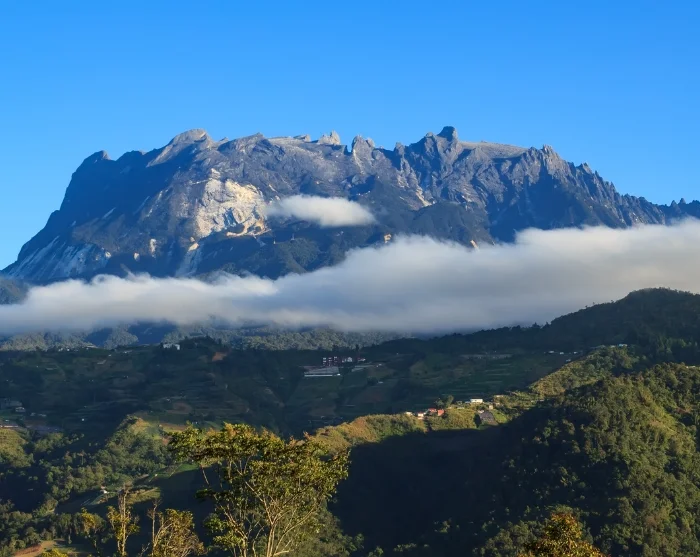 Fra Sabahs lavtliggende regnskove går turen videre til Kundasang ved foden af Sydøstasiens højeste bjerg, Mt. Kinabalu. Her venter et besøg i den UNESCO-listede Kinabalu Nationalpark, hvor du kan opleve nogle af de mere end 4.500 plante- og dyrearter. Har du lyst, kan du begive dig ud på en gåtur blandt trætoppene ad Canopy Walkway med nervepirrende udsigt over regnskoven. Du kan også slappe af i de mineralrige varme kilder ved Poring Hot Spring eller det afsidesliggende Kipungit-vandfald.