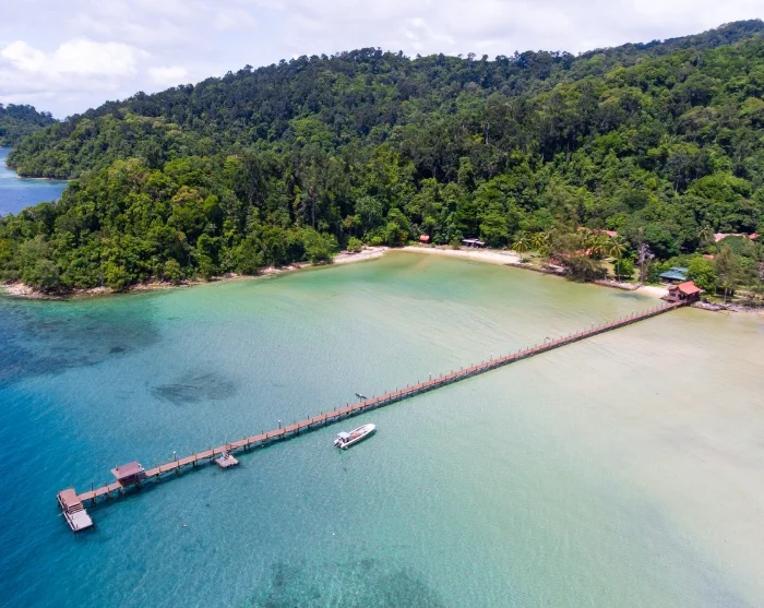 På trods af øens lille størrelse (15 km2) byder den på et større areal med frodig regnskov, som du kan udforske med resortets naturguide ad fremkommelige junglestier. Her finder du et overraskende stort dyreliv med bl.a. næseaber, bartesvin og flyvende egern.