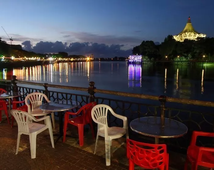 Rundturen afsluttes ved flodpromenaden, hvor Kuchings historie bringes til live gennem de majestætiske bygninger. Du kan eksempelvis se Pavillonen og Det Gamle Posthus fra den hvide rajahs æra, der regerede Sarawak-staten i perioden 1841-1946.