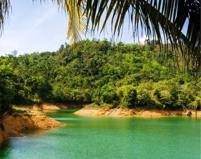 På trods af øens lille størrelse (15 km2) byder den på et større areal med frodig regnskov, som du kan udforske ad fremkommelige junglestier. Her finder du et overraskende stort dyreliv med bl.a. næseaber, bartesvin og flyvende egern.