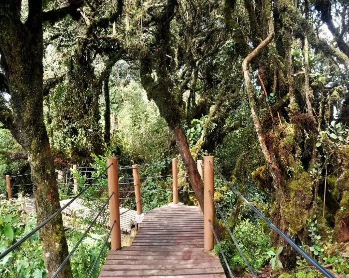 Du går ad stier lavet af træplanker, grus eller naturligt terræn, som fører dig gennem det tætte, tågede landskab. Her får du indblik i skovens biodiversitet med blandt andet kødædende planter, sjældne orkidéer og en række fuglearter. Undervejs er der flere udsigtspunkter, og på klare dage kan du beundre udsigten over de vidstrakte teplantager, de omkringliggende bjerge og dale.
