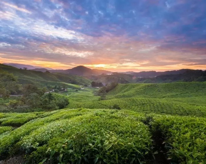 Cameron Highlands ligger 1.542 meter over havets overflade og byder på et køligere klima end resten af Malaysia. De behagelige temperaturer gør jorden særligt frugtbar, hvilket udnyttes til dyrkning af bl.a. jordbær, majs, orkidéer, roser og te med plantager, så langt øjet rækker.