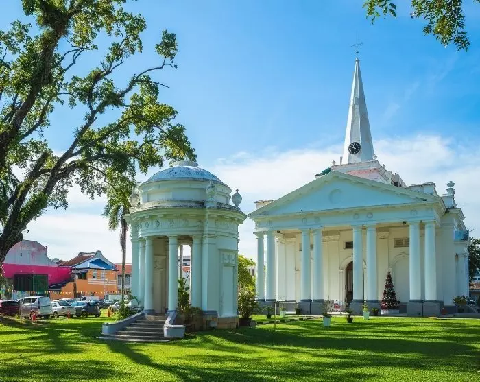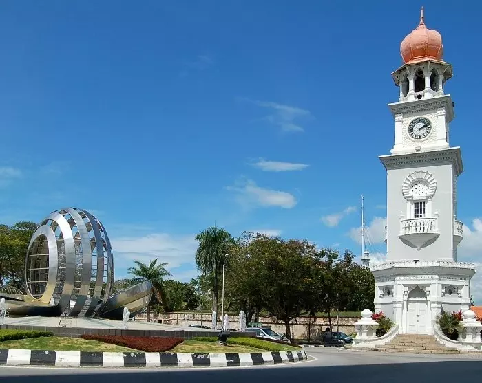 Herfra går turen ned til byens promenade, Esplanade, hvor du kan nyde udsigten over Malaccastrædet og de historiske omgivelser, som bl.a. det britiske Fort Cornwallis fra det 18. århundrede og det ikoniske vartegn, Queen Victoria Memorial Clock.