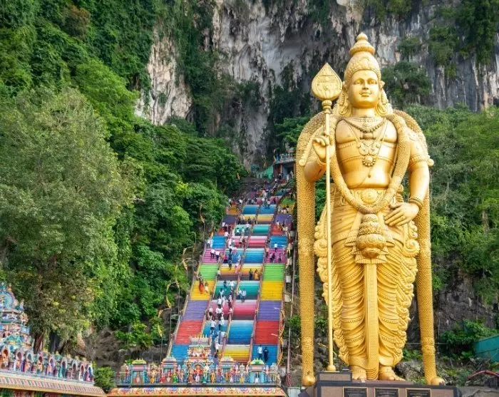 Fra pulserende storbyliv fortsætter rejsen mod smukke naturoplevelser, når turen går til Cameron Highlands med et stop ved den hinduistiske helligdom, Batu Caves.