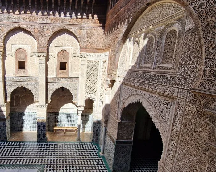 Byen, der blev grundlagt i år 789, har gennem århundreder vokset sig til et levende, historisk centrum med over 9.000 smalle gader og passager. Her finder du alt fra tæppeværksteder og smedjer til de ikoniske garverier, hvor farverige kar og duften af læder vidner om håndværkets stolte traditioner. Den tætte bebyggelse, de mange markedspladser og de historiske madrasaer og moskéer gør medinaen til et fascinerende virvar af liv, hvor historie, kultur og hverdag stadig eksisterer side om side.