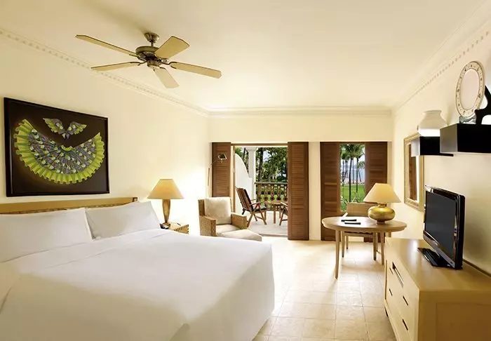 Værelserne er store, rummelige og indrettet i mauritisk og asiatisk stil med enten balkon eller terrasse. Alle værelser vender ud mod havet. Værelserne er alle udstyret med aircondition, minibar, te- og kaffefaciliteter, fladskærms-tv – og alt hvad du ellers forventer af et femstjernet resort. Der er gratis wi-fi på hele hotellet.