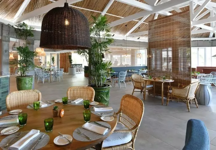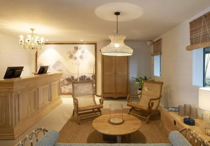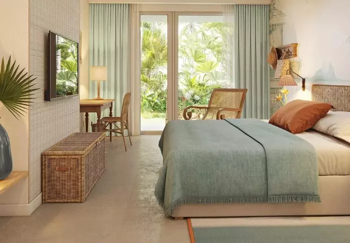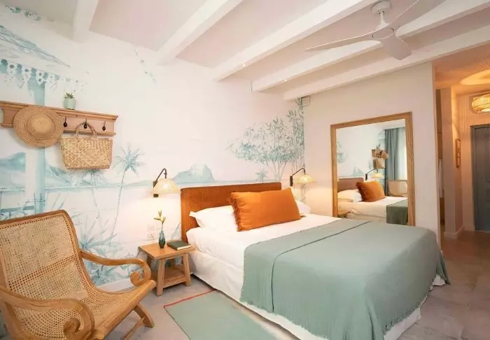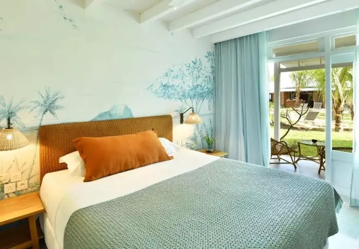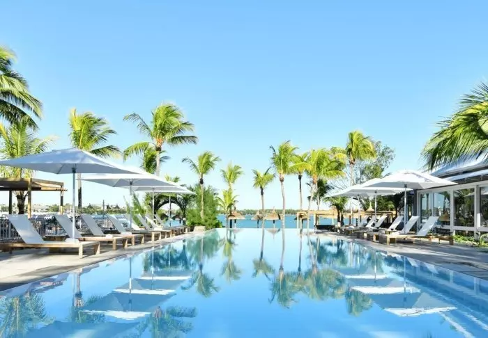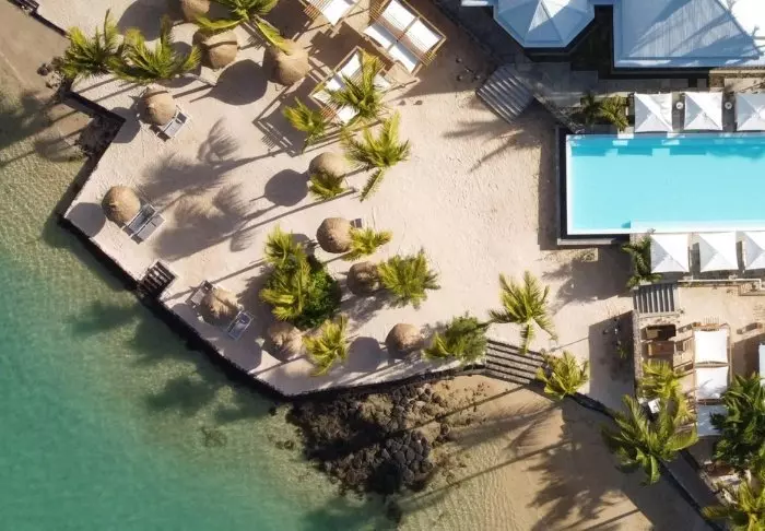Selve hotellet er enormt charmerende – en slags moderne kolonistil. Grønne planter, træskodder, bambusmøbler og lyse farver præger indretningen i både lobby og restaurant. Den lange infinity pool er placeret i resortets midte, og tættest på stranden ligger den meget hyggelige strandbar/restaurant. Lige nedenfor strandbaren finder du “bådhuset”, hvor du kan låne kajakker eller paddleboard. Det er også herfra, du kan hoppe på den gratis “taxa-båd”, som sejler dig ind til centrum af Grand Baie. Med maverne – eller shoppingposerne – fyldte kan du nemt slentre hjemad til hotellet igen på under 15 minutter.