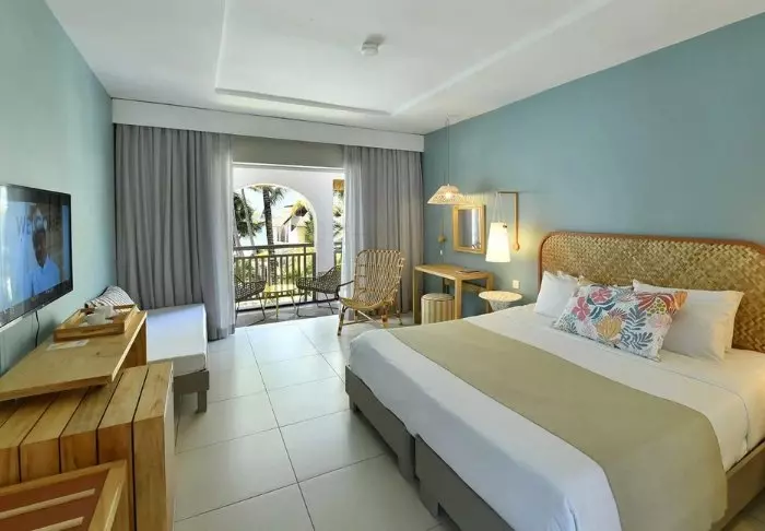 Comfortværelserne ligger længst væk fra stranden men til gengæld tætteste på poolen, og beachfront room ligger – som navnet næsten antyder – tættest på stranden. Derimellem finder man seaview-værelserne. Alle værelseskategorier har samme størrelse – det er kun beliggenheden, som adskiller dem. Værelserne i stueetagen har alle en lille terrasse, mens dem på første og anden sal har balkon.