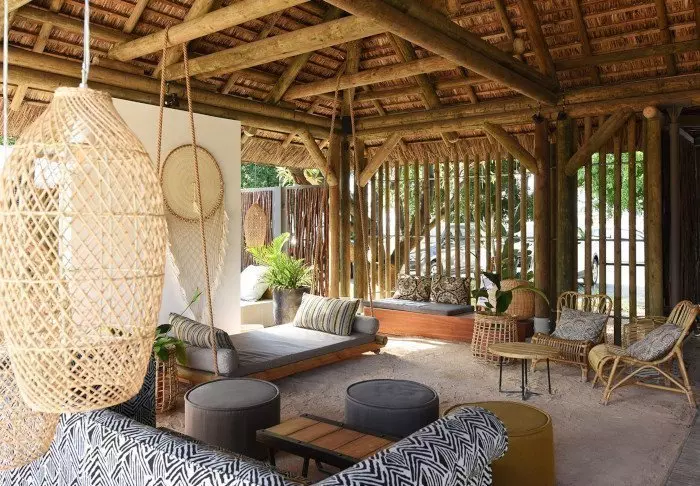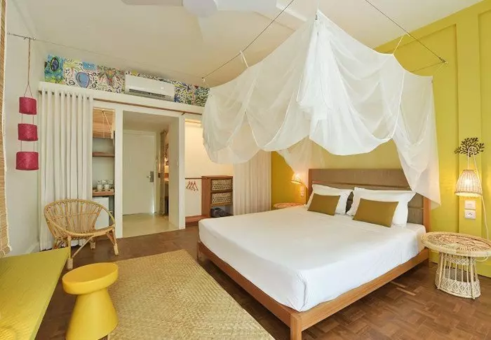 Her er ingen høje mure eller elektriske porte. I stedet er der hængekøjer, sand på gulvet i lobbyen og en hyggelig, charmerende og intim stemning.