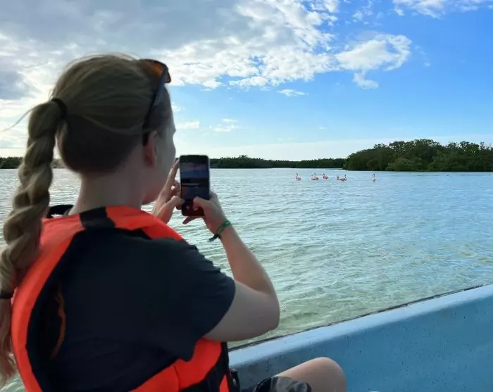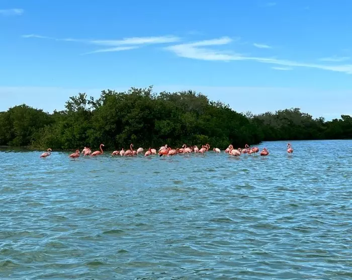Du bliver hentet på dit hotel om morgenen, hvorefter turen først går til den lille fiskerlandsby Rio Lagartos, ca. 100 km nord for Valladolid. Her starter du dit natureventyr med en 2 timers bådtur i biosfærereservatet med næsten samme navn: Ria Lagartos. Her kan du glæde dig til at opleve et væld af eksotiske fugle, bl.a. den smukke lyserøde flamingo, når du begiver dig ud i mangrovekanalerne for at udforske den omfattende naturlige mangfoldighed. Flamingoerne kan opleves hele året, men i perioden fra april til august er der særligt mange, da de samles her for at yngle. Måske du også er heldig at spotte en krokodille, der ligger på lur i vandkanten.