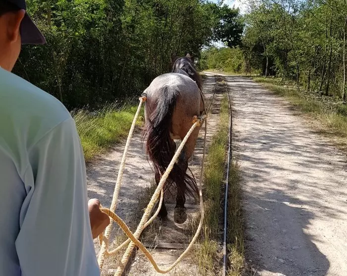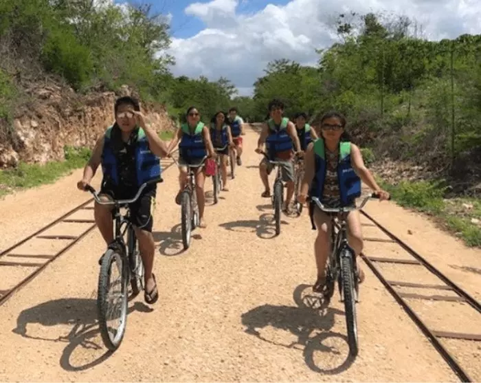 Du kan enten vælge at cykle eller at køre med hestevogn mellem de forskellige cenoter.