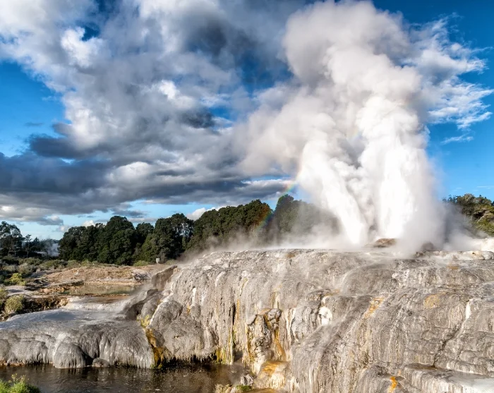 Du bliver hentet på dit hotel i Rotorua, og første stop på turen er Te Puia Thermal Park. Her kan du opleve boblende mudder og dramatiske gejsere, bl.a. Pōhutu-gejseren, som springer op til 30 meter i vejret flere gange dagligt.
