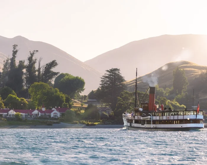 Din rejse begynder med en 45-minutters sejltur tværs over Lake Wakatipu ombord på TSS Earnslaw, et historisk dampskib fra 1912, og det eneste kulfyrede passagerskib i drift på den sydlige halvkugle. Undervejs kan du udforske skibets maskinrum, nyde udsigten fra dækket eller slappe af med en forfriskning fra den lille café ombord.