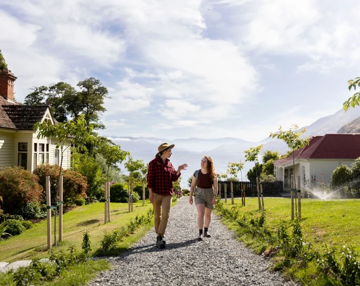Walter Peak High Country Farm ligger i idylliske omgivelser ved foden af det 1.800 meter høje bjerg Walter Peak. Ved ankomst bliver du budt velkommen af farmens dedikerede hortonom (en slags haveekspert), som tager dig med på en guidet gåtur gennem de frodige haver, frugtlunde og bistader. Undervejs får du et fascinerende indblik i områdets historie og økosystem – herunder arbejdet med at fjerne invasive træer og genskabe det oprindelige landskab ved at plante hjemmehørende arter. Du får selv mulighed for at vælge og plante et lille newzealandsk træ eller en busk i farmens planteskole og dermed bidrage til at genskabe naturlige habitater, der bl.a. kan tiltrække fuglelivet tilbage til området.