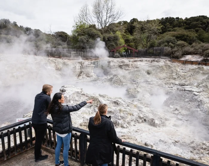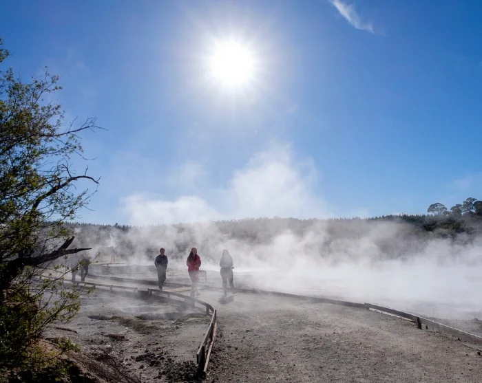 Ved ankomst starter din selv-guidede vandretur rundt i parken, som tager ca. 1-1,5 time. Du bliver mødt af et landskab af dampende svovlkilder, boblende mudderpøle og skoldhede vandfald – omgivet af svovlduft, varme tåger og krystalliserede mineralaflejringer. Ruten er tydeligt afmærket og nem at gå, og undervejs finder du informationstavler og udsigtspunkter, der forklarer områdets unikke geologi og maoriernes betydning.