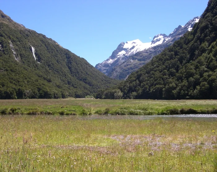 Du starter med at krydse en hængebro over Routeburn-floden og fortsætter ind i en spektakulær bøgeskov. Stien er jævn og flad, så du har gode muligheder for at holde øje med fugle, der flyver gennem trækronerne. Måske er du heldig at få øje på New Zealands mindste fugl, klatresmutte (Acanthisitta chloris), eller den sjældne gulhovedet mohua (Mohoua ochrocephala), som er endemisk for New Zealand.