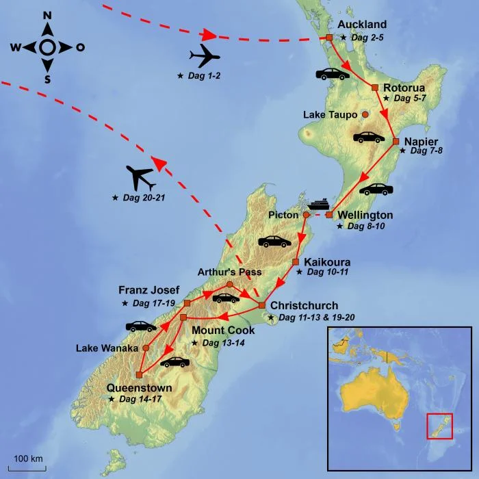 Undervejs har du oplevet alt fra pulserende storbyer og levende maorikultur til geotermiske landskaber, unikt dyreliv og dramatiske bjergområder – og ikke mindst mødt en venlig og imødekommende befolkning og skabt minder, du vil tage med dig resten af livet.