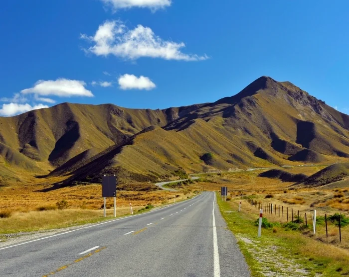 Herefter fortsætter rejsen mod Queenstown. Ruten går gennem det åbne højland via Twizel og Omarama og videre over Lindis Pass, hvor bløde bakker og vidtstrakte landskaber skaber en helt særlig ro.