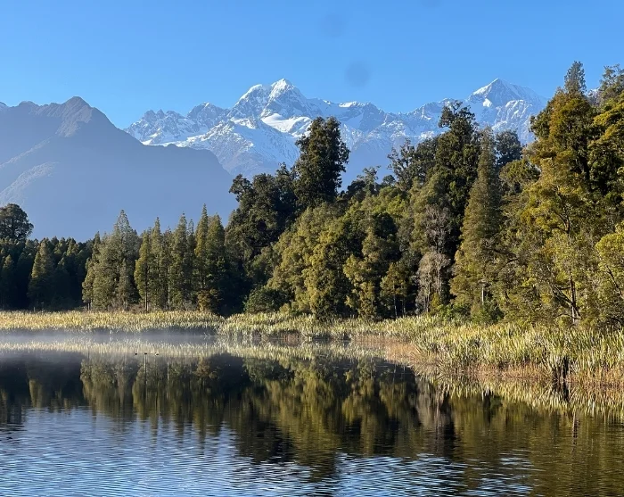 Senere kan du gøre stop ved Lake Matheson (Te Ara Kairaumati), som på stille dage spejler bjergene i overfladen og skaber et helt særligt motiv. Den smukke vandretur rundt om søen er ca. 4,5 km lang.