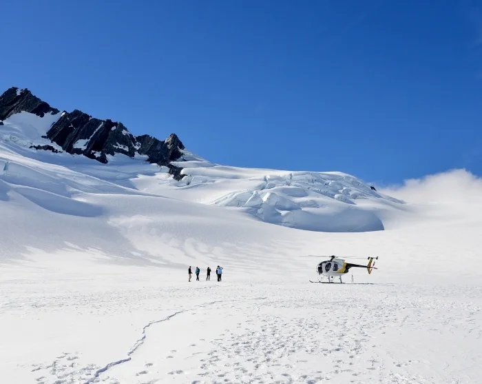 Vil du have en endnu tættere oplevelse, kan du vælge en helikoptertur, hvor du flyver over gletsjeren og lander direkte på isen.