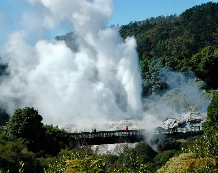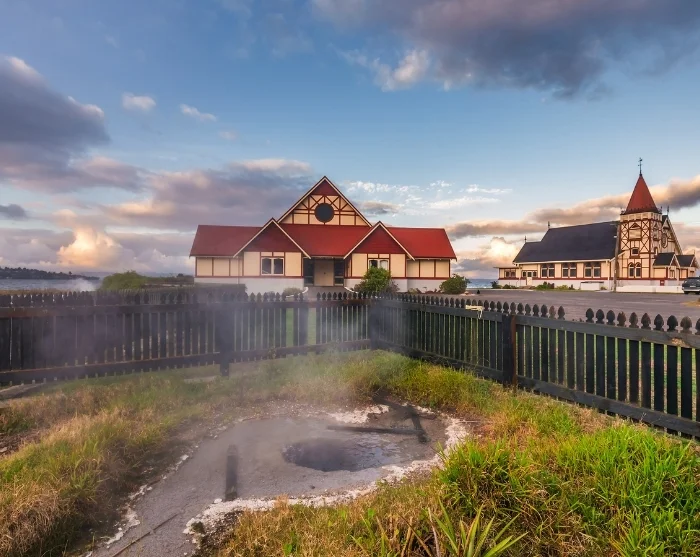 Sidst på dagen ankommer du til Rotorua, hvor du straks kan mærke den karakteristiske duft af svovl og fornemme den geotermiske aktivitet, som området er kendt for.