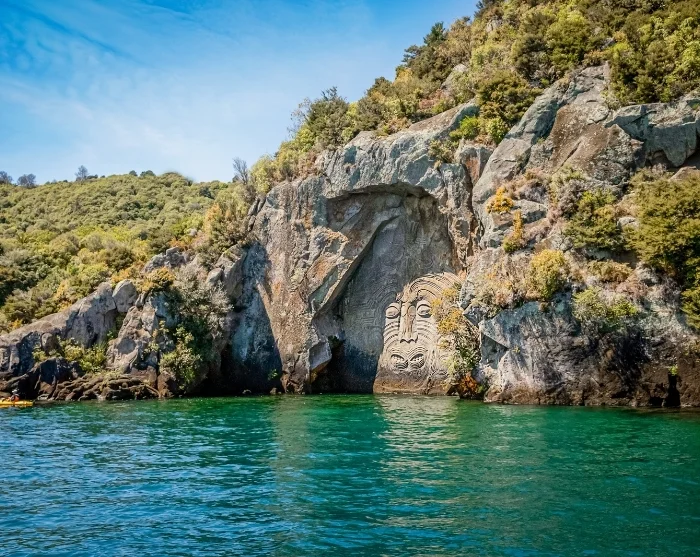 På vejen passerer du Lake Taupō, New Zealands største sø, hvor det er oplagt at gøre et stop. Her kan du tage en sejltur ud til de imponerende Māori Rock Carvings ved Mine Bay eller besøge de brusende Huka Falls.