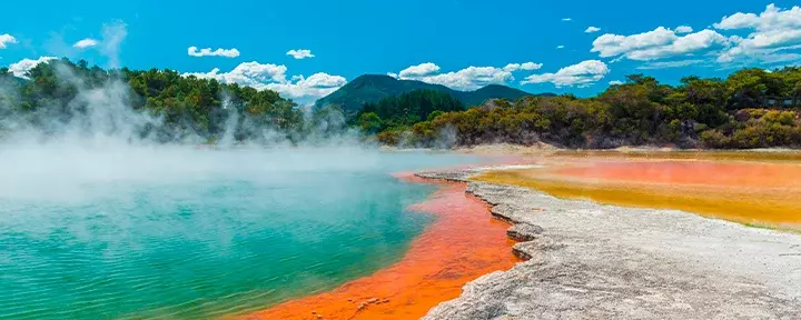Derefter går rejsen videre til Wai-O-Tapu, hvor naturens kræfter har skabt et farverigt og fascinerende geotermisk landskab. Du ser bl.a. Champagne Pool, kratersøer og svovldamp, der stiger op fra jorden. Det er som at være på en anden planet, og ja, det lugter lidt af svovl, men det hører med til oplevelsen.