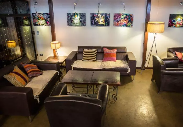 Fællesområdet er i to etager; nederst ligger lodgens bar og restaurant, hvor dine inkluderede måltider serveres. Maden her er rigtig lækker og en blanding af nationale- og internationale retter med fokus på brug af lokalproducerede råvarer.