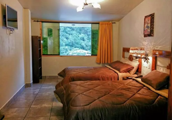 Værelserne er simpelt indrettede, men har alle radiatorer, kabeltv, wi-fi og eget badeværelse, hvor du kan få dig et fortjent langt varmt bad efter 2 dages trekking i Andesbjergene.