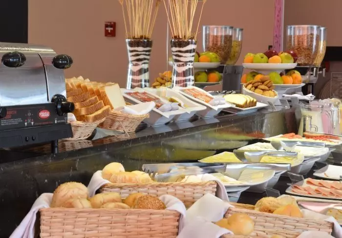 På hotellets restaurant kan du starte dagen med din inkluderede morgenmad. Her kan du vælge mellem forskellige morgenmadsprodukter, brød, ost, skinke, juice mm.