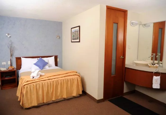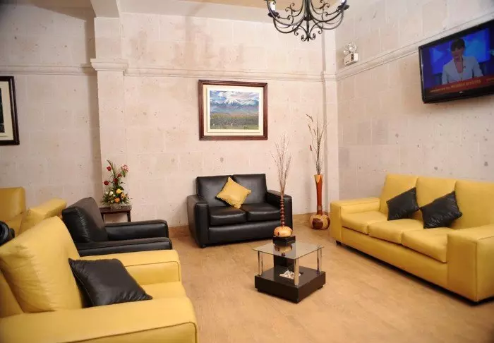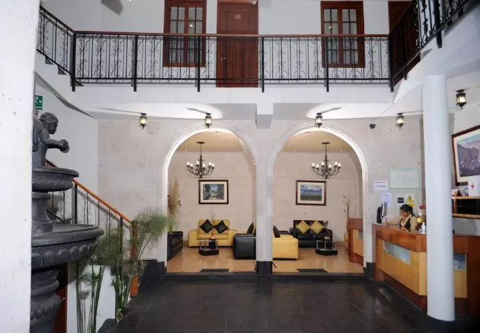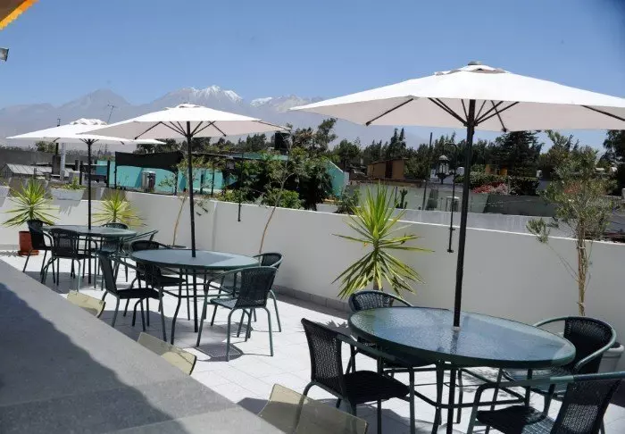 Faciliteterne inkluderer en restaurant som serverer peruvianske og internationale retter samt en tagterrasse hvor du kan slappe af og nyde udsigten til de omkringliggende vulkaner med sneklædte toppe.