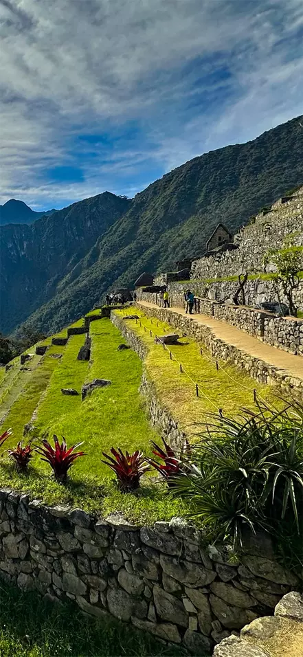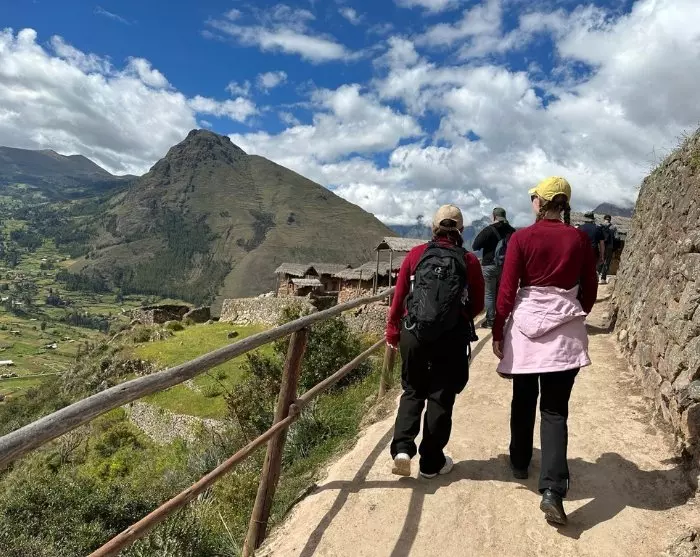 Rejsen fortsætter gennem bjergene til den velbevarede idylliske landsby Ollantaytambo, som ligger i Den Hellige Dal. omgivet af imponerende inkaruiner.