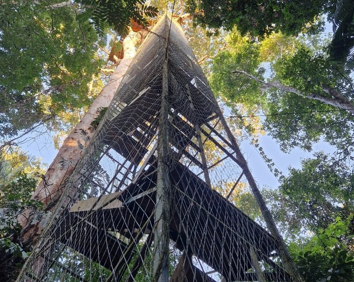 Om eftermiddagen går turen til et af lodgens udkigstårne på henholdsvis 20 eller 42 meter, som er bygget til at kigge efter fugle og andre dyr, som lever oppe i højderne. Heroppefra får du også en formidabel udsigt over regnskoven, og du kan se frem til en smuk solnedgang. Har du ikke lyst til at komme op i udkigstårnene, kan programmet tilpasses lokalt.