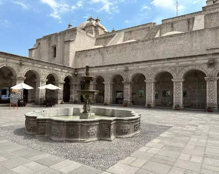 Dernæst venter Arequipas største attraktion, Santa Catalina klosteret, hvor der engang boede mere end 400 nonner. Santa Catalina blev grundlagt i 1580 af den rige enke Maria de Guzmán. Stedet henvendte sig primært til overklassen, hvor det, under kolonitiden, var en sædvane, at familiens andet barn skulle tjene kirken. Pigerne blev bragt til klosteret allerede i tre-årsalderen og kom aldrig uden for murene igen.