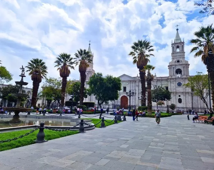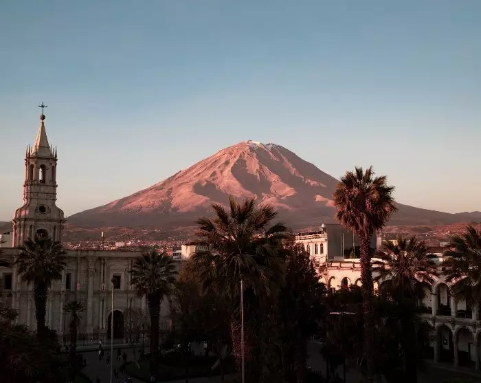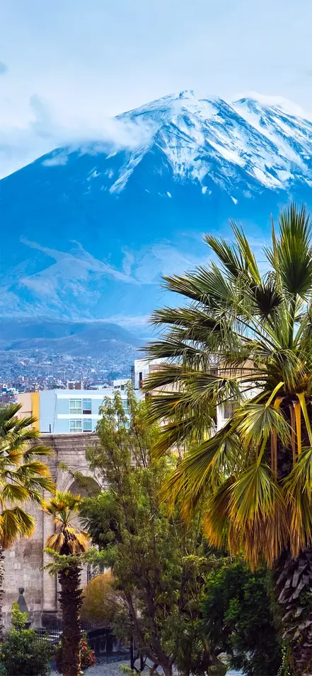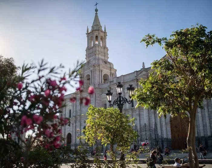 Arequipa er smukt beliggende i Andesbjergene i næsten 2.400 meters højde med vulkanerne Misti (5.822 m), Chachani (6.057 m) og Pichu-Pichu (5.669 m) som smuk kulisse. Byen går under navnet ”Den Hvide By”, fordi de fleste huse er bygget af vulkanske sten.
