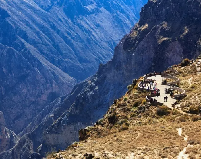 Efter morgenmaden kører du mod det storslåede udkigspunkt, Mirador Cruz del Condor, hvor du har udsigt ned over én af de dybeste dele af Colca Canyon. Det er en hel fantastisk oplevelse at stå her og både kigge ned og ud over den enorme kløft. På dette sted kan du være heldig at opleve kondorer svæve lydløst hen over hovedet på dig. Kondoren er verdens største rovfugl med et vingefang på op til 3 meter. Den bruger de varme luftstrømme, der stiger til vejrs fra kløften, til at få luft under vingerne.