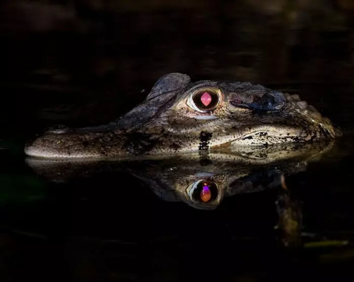Senere denne aften skal du på en guidet sejltur ned ad floden for at spotte kaimaner, der lever ved flodbredderne. Når kaimanerne bliver blændet af lyset fra guidens lommelygte, vil deres øjne blive røde, hvilket gør det lettere for dig at få øje på dem.