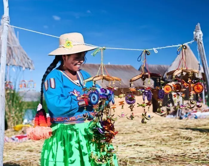 Herefter sejler du videre til den fredelige ø Taquile, der især er kendt for sit farverige kunsthåndværk og sine ”strikkende mænd”. Her på øen er det nemlig mændene, der strikker, og det er de gode til! Mønstret på en mands strikhue, kaldet chullo, viser både hans kreativitet og ikke mindst hans civile status. Kvinderne står for at spinde garnet og væve. Det er kvinderne, der væver de smukke bælter til mændenes klædedragter.