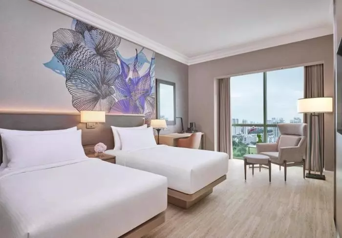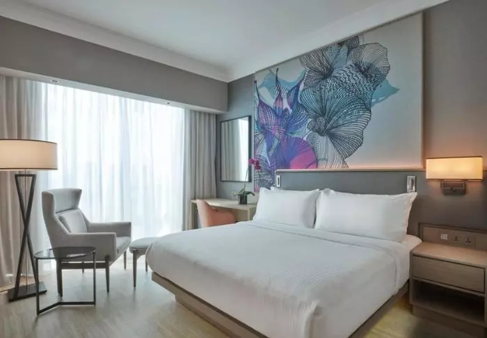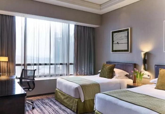 Er du blevet træt og trænger til en lur, men vil stadig gerne nyde udsigten over byen, så fortvivl ej! Værelserne er nemlig placeret på højtliggende etager, så du har rig mulighed for at rulle gardinerne til siden og vågne op til dette. Alle værelser har aircondition, wi-fi, TV, værdiboks, strygejern- og bræt, minibar samt gratis te- og kaffefaciliteter. Badeværelset er udstyret med regnbruser, toiletartikler og hårtørrer.