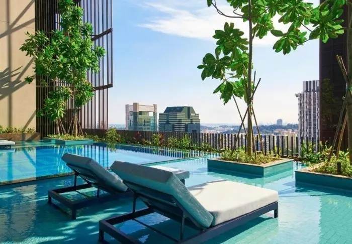 Det er ikke kun udefra, du vil bemærke dets spektakulære måde at omfavne naturen på midt inde i storbyen. På 27. etage finder du nemlig tagterrassen, som er dekoreret med 21 forskellige slags slyngplanter og vinstokke. Her er der rig mulighed for at slappe af på en solseng ved siden af én af de to pools. Nogle etager længere nede finder du endnu en terrasse, som ligner en frodig oase. Tag en god bog med og sæt dig i deres loungeområde eller find træningstøjet frem og lav nogle øvelser på det grønne græsareal, mens du nyder den fantastiske udsigt. Du har også mulighed for at benytte deres fitnessrum, som er åben 24 timer i døgnet.