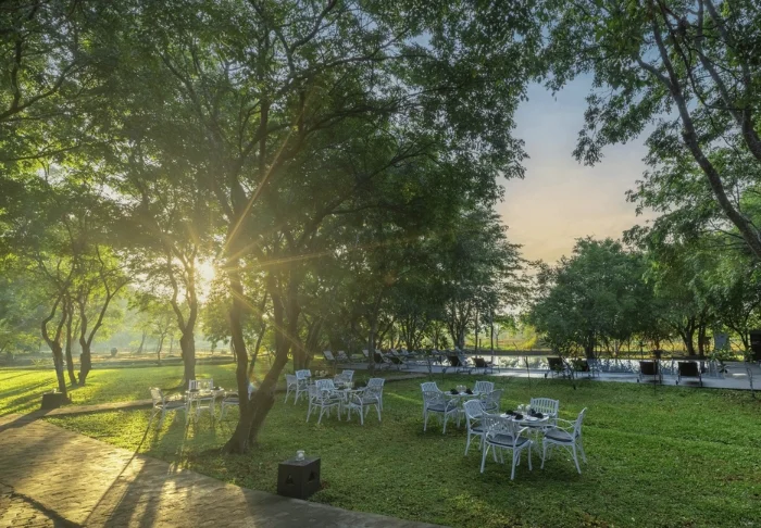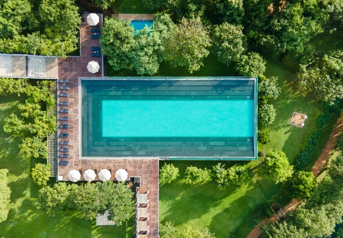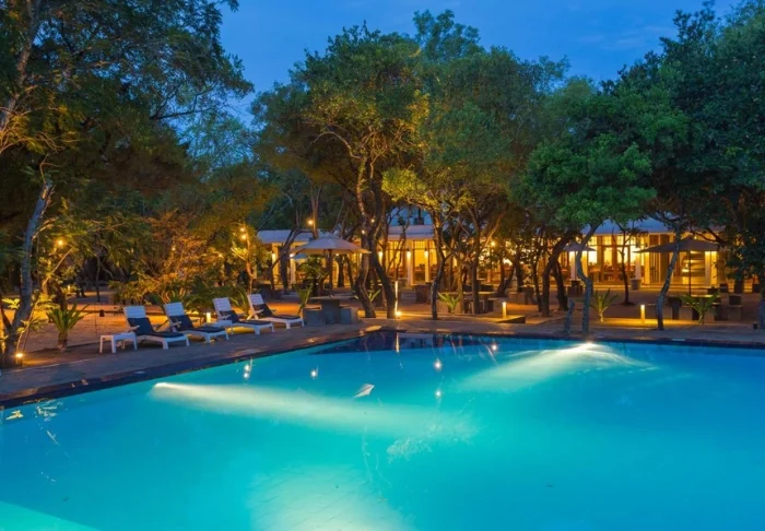 Når du ikke er på safari, kan du søge mod resortets poolområde, en fredelig oase midt i det grønne. Her kan du tage en forfriskende dukkert eller finde dig godt til rette på en solseng med en kold drink fra poolbaren. Poolområdet har også en mindre børnepool, så der er plads til både afslapning og leg. Vil du holde dig aktiv, har resortet desuden et fitnessrum med moderne udstyr.