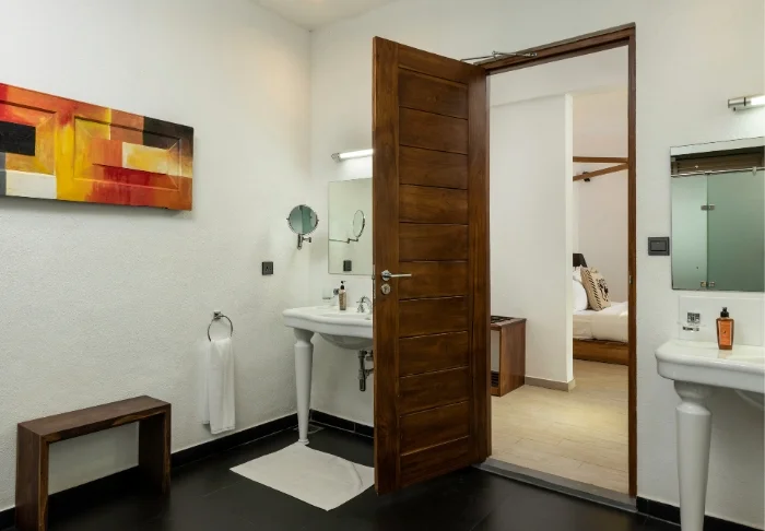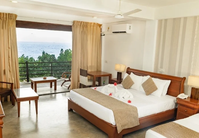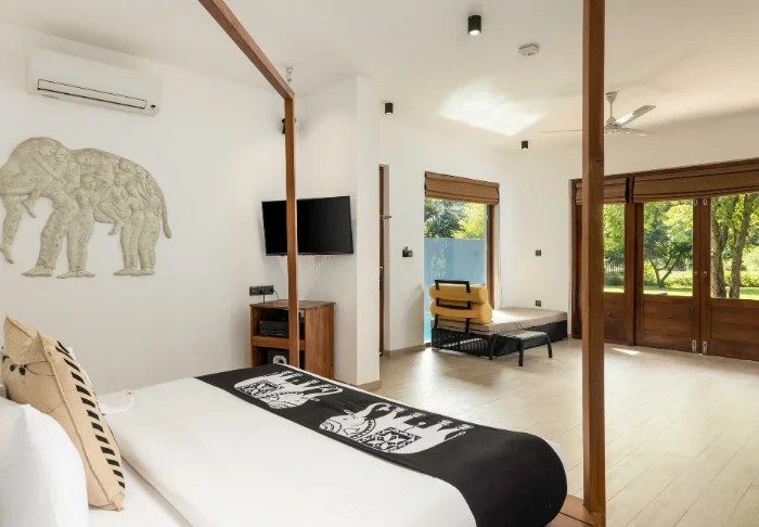 Du bor som udgangspunkt i et Deluxe-værelse i moderne, minimalistisk stil, hvor lyse farver og srilankanske detaljer skaber en harmonisk balance mellem enkelthed og varme. Her kan du nyde godt af både aircondition, wi-fi, tv, værdiboks, skrivebord, siddeområde, telefon og minibar, mens badeværelset er udstyret med både badekar og bruser samt tilhørende toiletartikler. Du har desuden adgang til din egen balkon, hvor du kan nyde havens rolige omgivelser med en god bog i hånden.