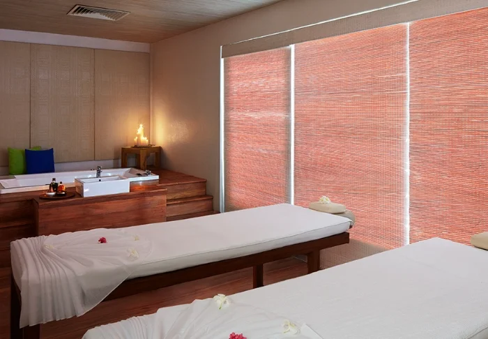 Hotellets poolområde flugter med stranden og er et naturligt samlingspunkt. Her kan du tage en dukkert, læne dig tilbage på en solseng og nyde en kold drink, eller træde ud på det bløde og gyldne sand, der kun er få skridt væk. Har du energien til det, kan du vælge at holde dig aktiv i det veludstyrede fitnessrum eller deltage i en omgang volleyball, og hvis ikke, kan du søge mod hotellets moderne spa. Her står en behandler klar med sine kyndige hænder til at gøre underværker for dig og din krop.