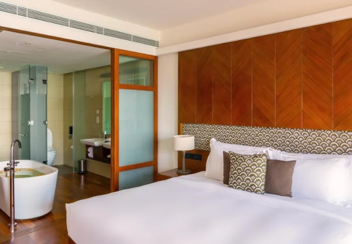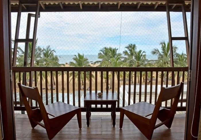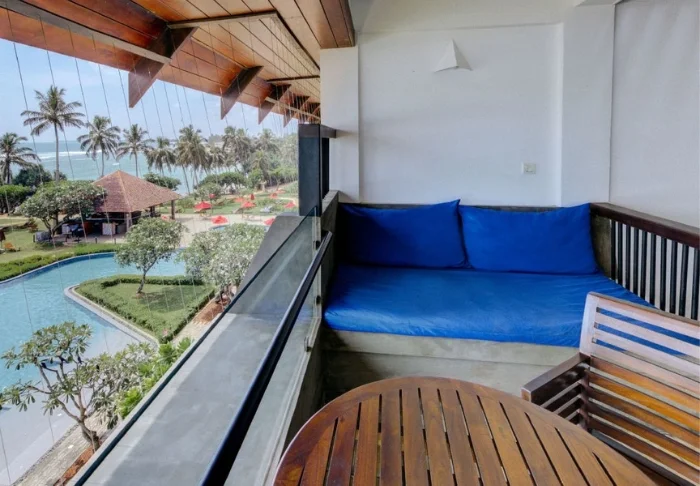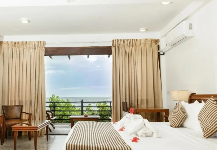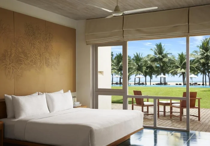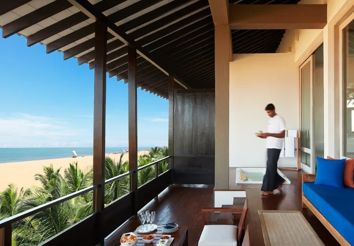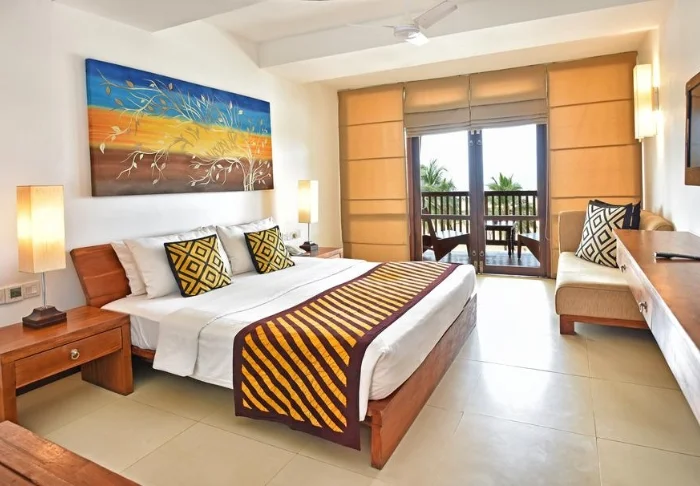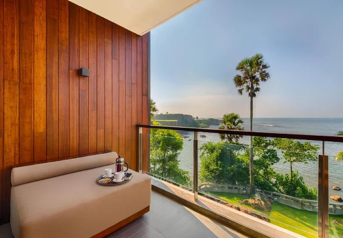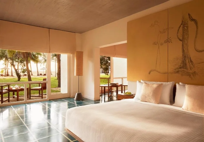 Hotellets design bærer præg af japansk minimalisme, hvilket tydeligt mærkes i det Deluxe-værelse, som du bor i under dit ophold. Værelset er moderne indrettet i rolige nuancer med sans for detaljer og naturlige materialer samt smukt træhåndværk, der giver et elegant og rustikt udtryk. Her kan du nyde faciliteter som aircondition, wi-fi, loftsvifte, minibar, værdiboks, te- og kaffefaciliteter og tv, mens badeværelset byder på badekåbe og tøfler, bruseniche samt tilhørende toiletartikler. Fra din private balkon eller terrasse kan du starte dagen med en kop srilankansk te og udsigt til horisonten.